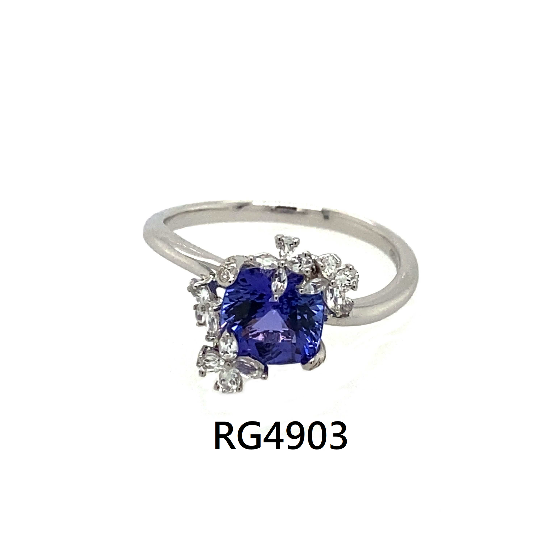 The client cleverly used white sapphires as flower-shaped companion stones to complement the sparkling blue D-Block Tanzanite in the center. The price is more affordable than diamond inlays, but the client still achieved the desired flower-shaped effect.