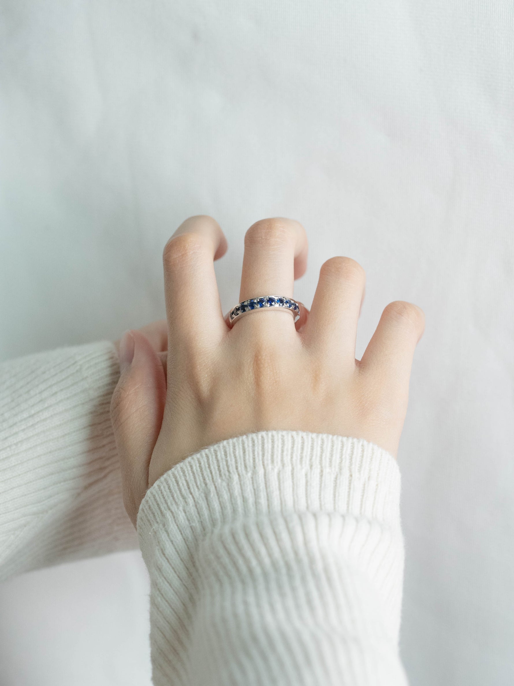 〰️🔹18K white gold sapphire simple everyday thick wire ring🔹〰️